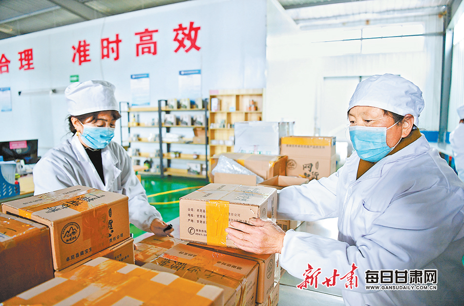 卓尼縣農(nóng)村電商物流公共服務中心分揀區(qū)工人正忙著分揀貨物。