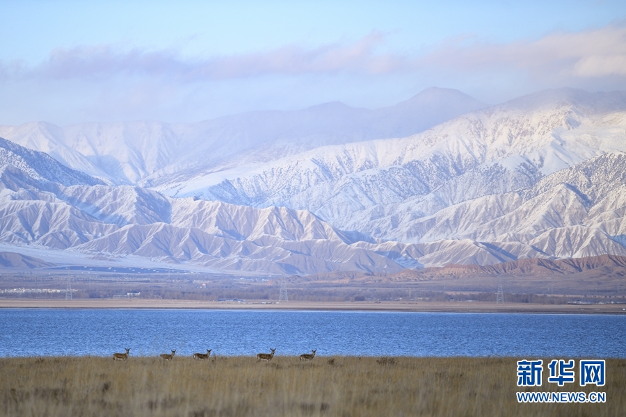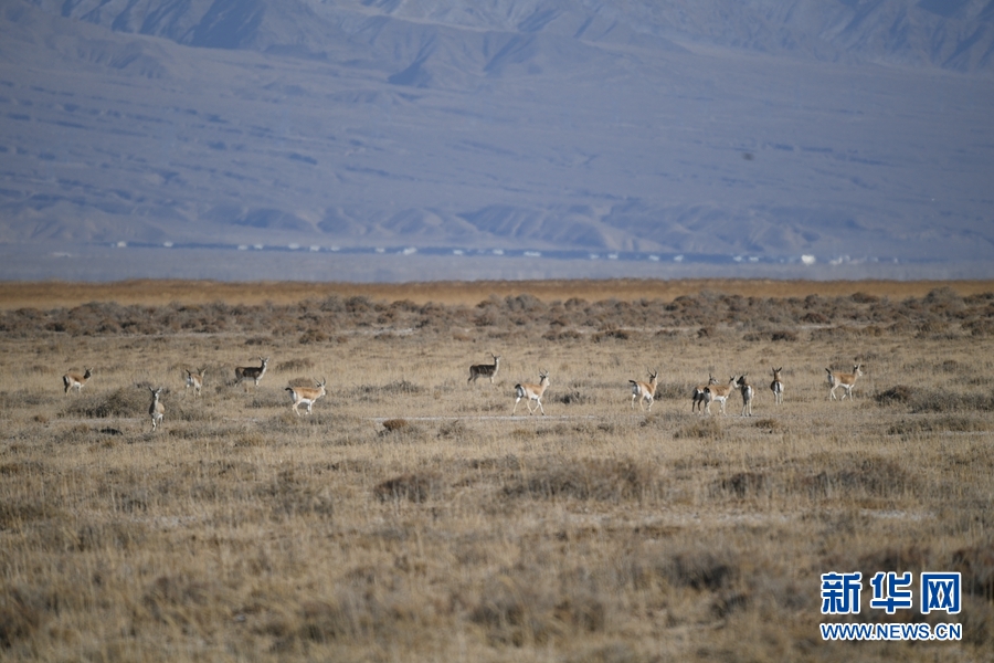 一群鵝喉羚在都蘭湖國家濕地公園內(nèi)活動。(11月21日攝)新華網(wǎng) 潘彬彬 攝