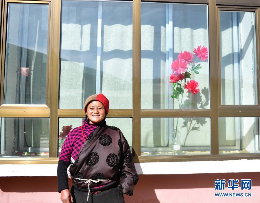 1月11日,隆亞村牧民索吉在搬遷點的新家前留影。新華社記者 張龍 攝