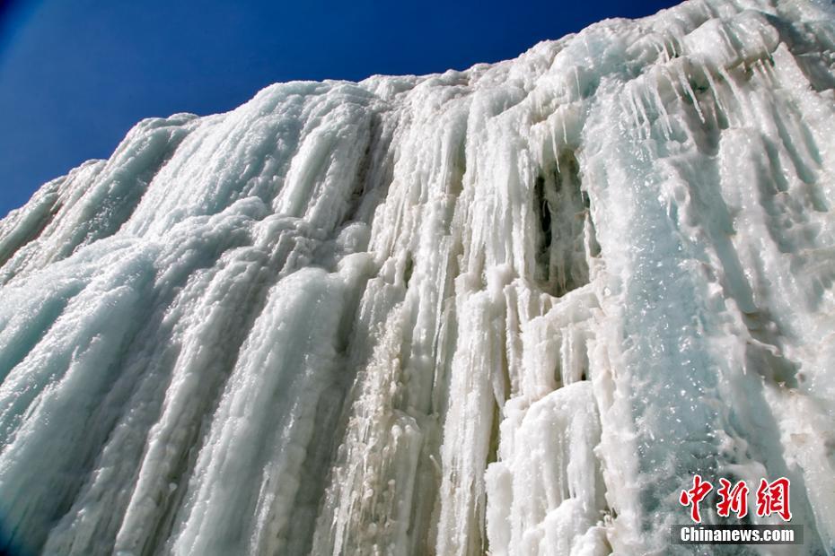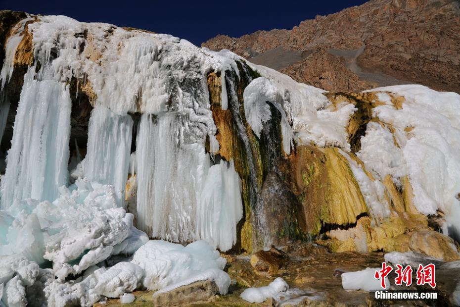 2021年1月23日,祁連山國(guó)家公園崗什卡雪峰山腳下的七彩冰瀑,由于溪水中含有多種礦物質(zhì),在冬日暖陽的照耀下,散發(fā)出五彩繽紛的綺麗風(fēng)光,蔚為壯觀。中新社發(fā) 成 林 攝
