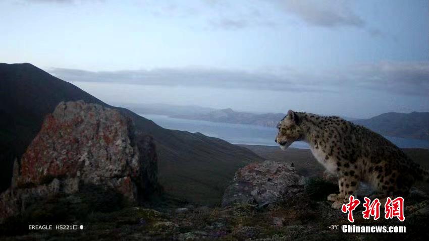 圖為相機(jī)夜幕下抓拍到的雪豹活動畫面。青海原上草自然保護(hù)中心供圖