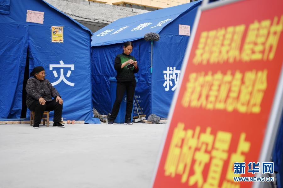 3月16日,在舟曲縣果耶鎮(zhèn)磨里村、果耶村滑坡災(zāi)害應(yīng)急避險(xiǎn)臨時(shí)安置點(diǎn),受災(zāi)群眾在帳篷外休息。新華社記者 范培珅 攝