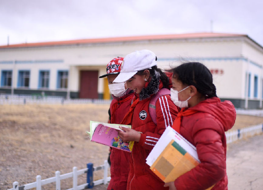 3月16日,索加鄉(xiāng)寄宿小學(xué)的一些孩子放學(xué)回家。新華社記者 張宏祥 攝