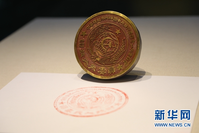 這是珍藏在甘肅省甘南藏族自治州迭部縣博物館內(nèi)的“中華蘇維埃共和國中央執(zhí)行委員會(huì)人民委員會(huì)財(cái)政人民委員”印章。新華社記者 馬莎 攝