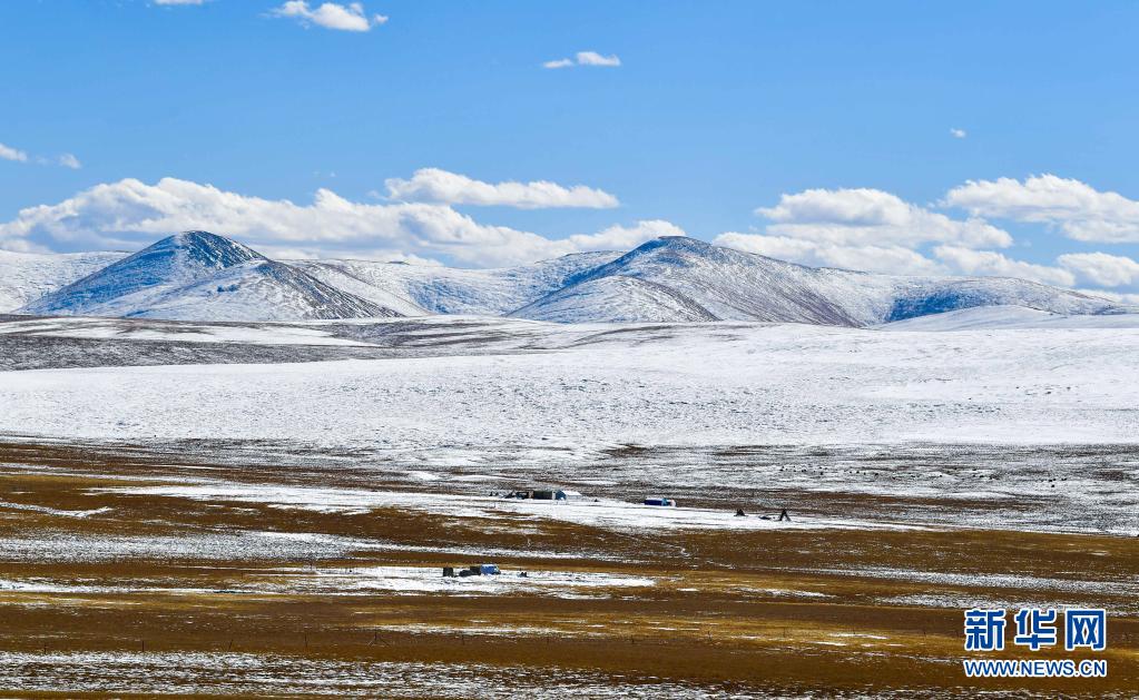 這是在青海省玉樹藏族自治州稱多縣拍攝的雪后牧場(2020年10月29日攝)。新華社記者 張龍 攝
