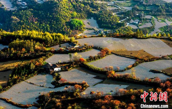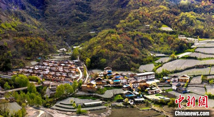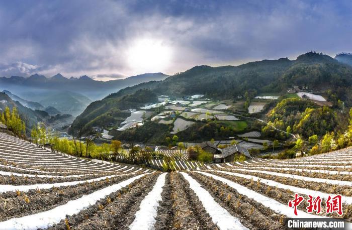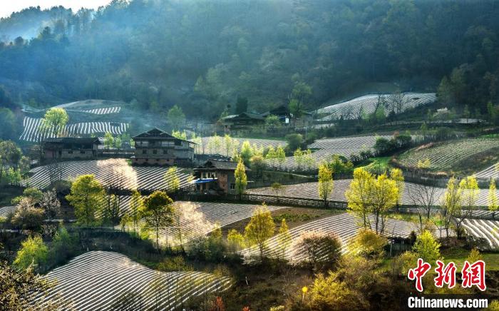 4月的四川雅安市寶興縣磽磧藏族鄉(xiāng),山坡上整齊有序的地膜,錯(cuò)落有致鋪在藏寨林間,構(gòu)成了一幅田園山水與天人合一的自然畫(huà)卷。