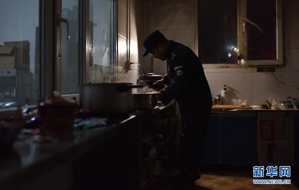 4月19日,袁廣明在可可西里索南達杰保護站做晚飯。新華社記者 吳剛 攝