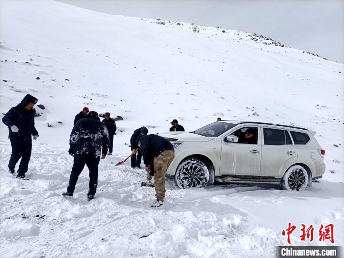 日前,青海省南部的三江源區(qū)域多地降雪,當(dāng)?shù)厣鷳B(tài)管護人員開啟艱難的風(fēng)雪巡山路。據(jù)悉,青海省玉樹藏族自治州曲麻萊縣約改鎮(zhèn)崗當(dāng)村的生態(tài)管護人員,野外巡山途中,大雪封山車輛被困。生態(tài)管護人員清雪無果,便徒步抄小道抵達巡護目的地。返程時,當(dāng)?shù)啬撩裼媚ν熊噷⑸鷳B(tài)管護人員送至車輛旁邊。