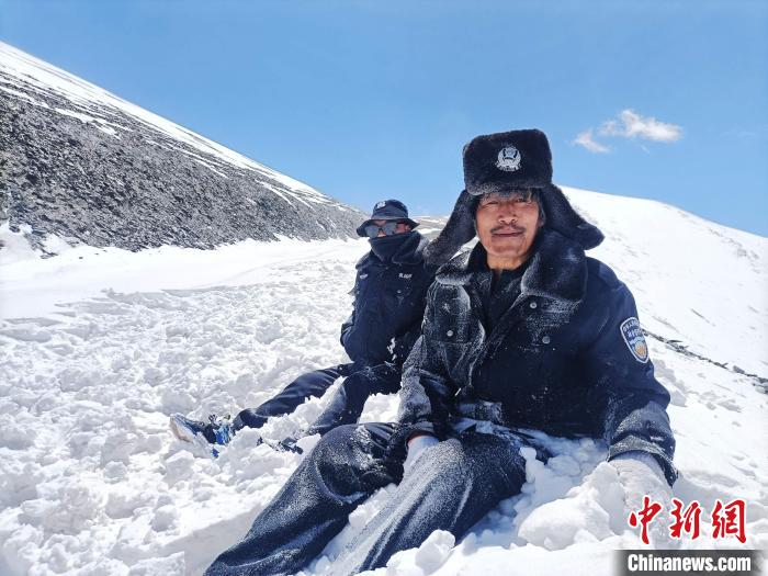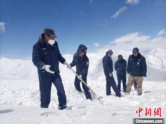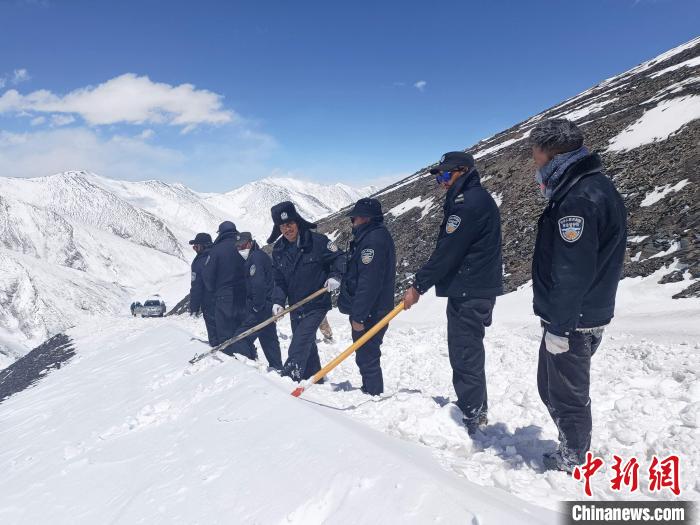 圖為清雪時的生態(tài)管護人員。丁巴達杰 攝