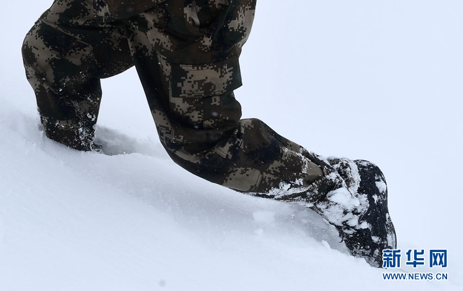 4月23日,祁連山國家公園沙龍灘管護站的生態(tài)管護員冒雪徒步巡護。新華社記者 費茂華 攝