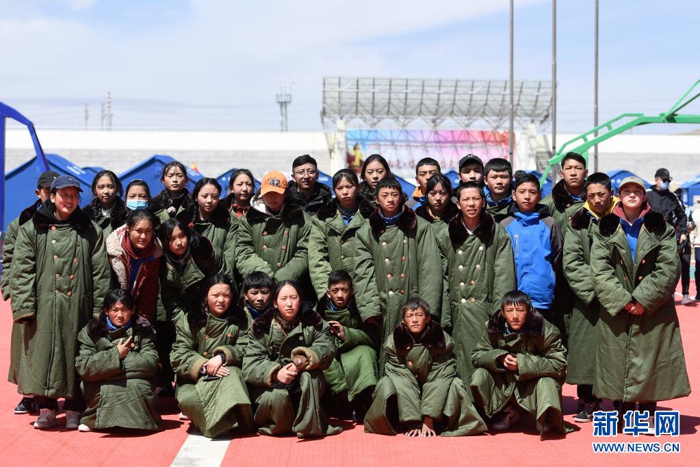 5月24日,曲邁卓瑪與同學(xué)們在瑪多縣民族寄宿制中學(xué)合影。新華社 張龍 攝