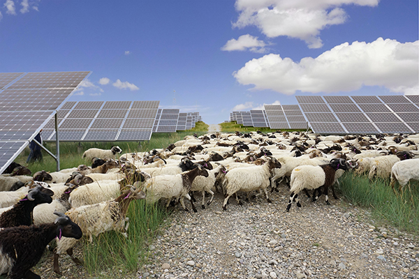 雜草越長(zhǎng)越好,既遮擋光伏板工作,在冬季還有火災(zāi)隱患。周邊村民受邀進(jìn)園區(qū)放羊, 為鋤草助力。再加上清洗光伏組件、割草、做保安,村民們拓寬了收入渠道,得以脫貧致富。這種牧光互補(bǔ)的模式,實(shí)現(xiàn)了經(jīng)濟(jì)、環(huán)境效益雙贏,也豐富了清潔能源產(chǎn)業(yè)的內(nèi)涵。