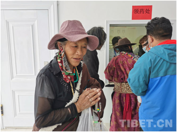 一名50多歲的藏族老人在領(lǐng)到免費(fèi)的藥品后,拉著志愿者的手感動(dòng)得流下眼淚。她說(shuō):你們太好了,看病給藥不要錢,謝謝你們!
