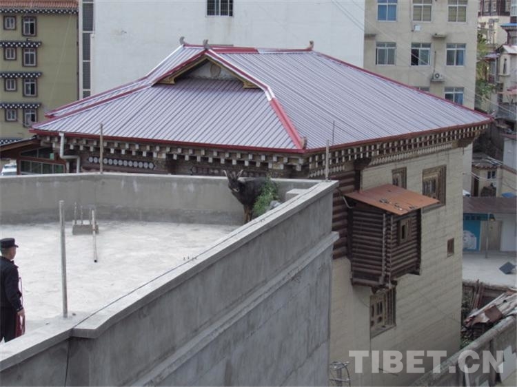 中國西藏網訊 7月14日清晨7時許,四川省甘孜藏族自治州新龍縣公安局森林警察大隊接到群眾報警稱:一頭不知名的野生動物從繞城大橋跳到自家三層樓房的房頂,不能脫身,請求救助。