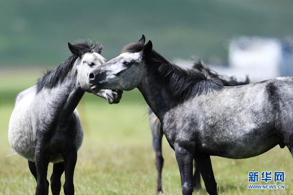 這是7月15日在甘肅瑪曲縣河曲馬場拍攝的河曲馬。新華社記者 陳斌 攝