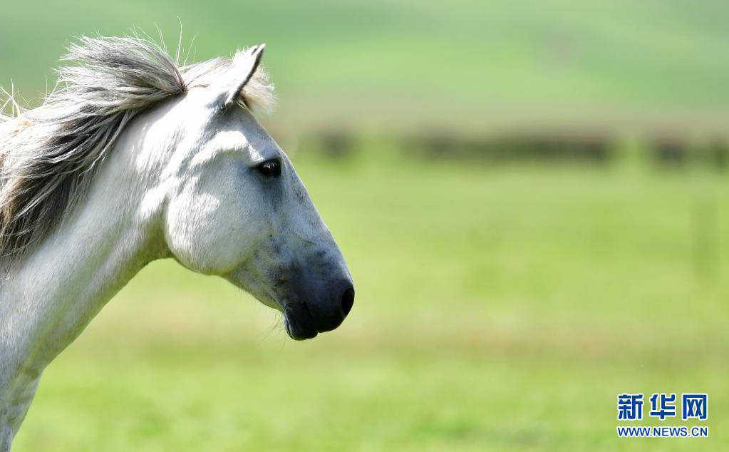 這是7月15日在甘肅瑪曲縣河曲馬場拍攝的河曲馬。新華社記者 杜哲宇 攝