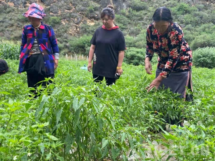 圖為技術(shù)人員在樹椒地里實(shí)地查看樹椒長勢