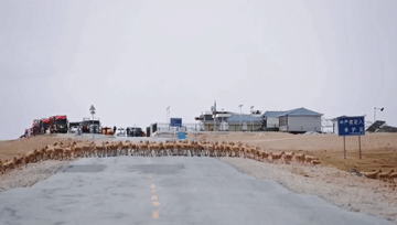 這是遷徙藏羚羊群經(jīng)過青藏公路可可西里五道梁路段。(素材由三江源國家公園管理局長江源園區(qū)可可西里管理處提供)