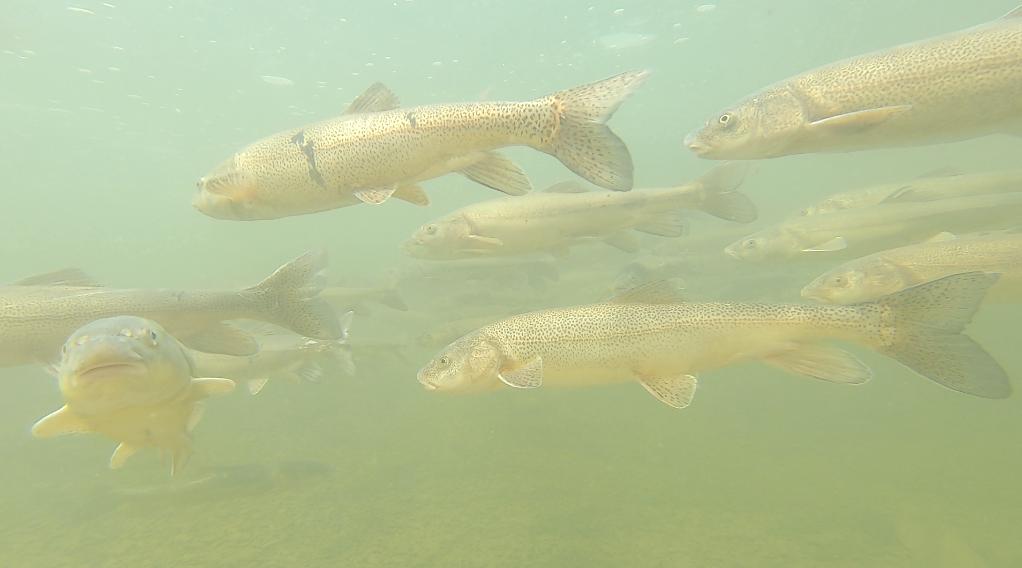 這是在長江源使用水下相機(jī)拍攝的自然條件下小頭裸裂尻魚繁殖群體。