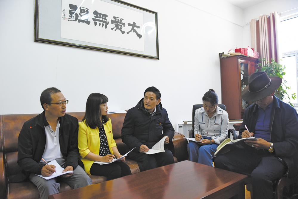 更松尼瑪和同事們一起討論下一階段的教學(xué)任務(wù)。張多鈞 攝