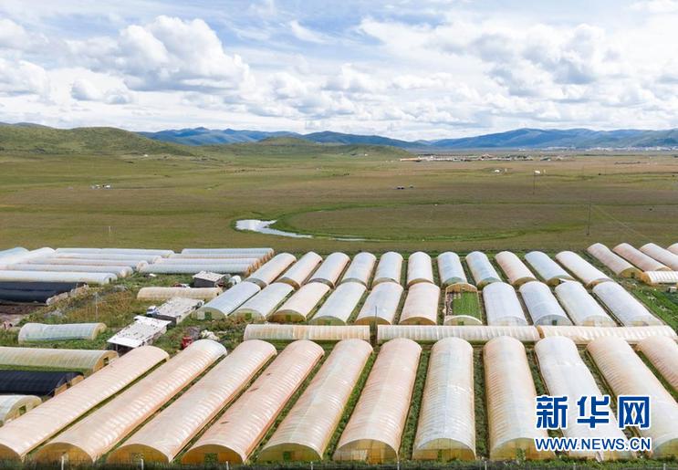 這是四川省阿壩藏族羌族自治州紅原縣邛溪鎮(zhèn)熱坤村的蔬菜大棚(8月13日攝,無人機(jī)照片)。新華社記者 江宏景 攝