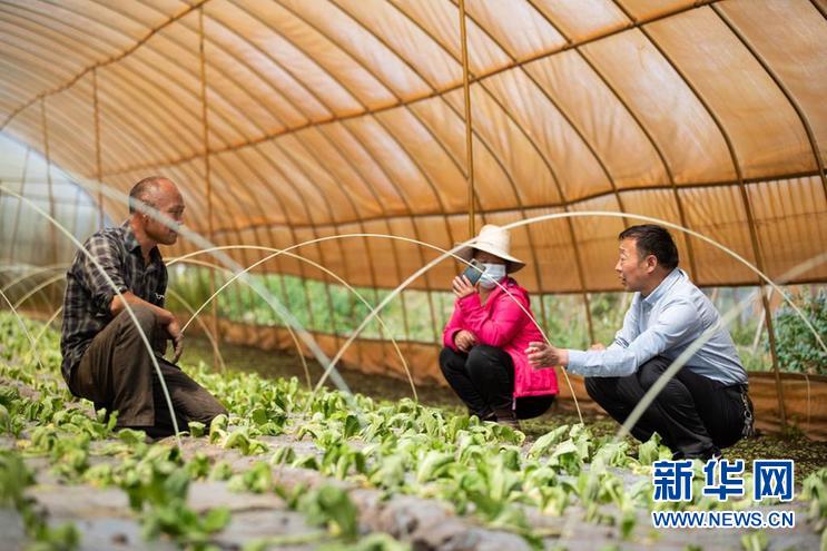 8月13日,在四川省阿壩藏族羌族自治州紅原縣邛溪鎮(zhèn)熱坤村的蔬菜大棚,農(nóng)業(yè)技術(shù)推廣研究員茍?。ㄓ遥┰诮o蔬菜種植大戶答疑解惑。新華社記者 江宏景 攝