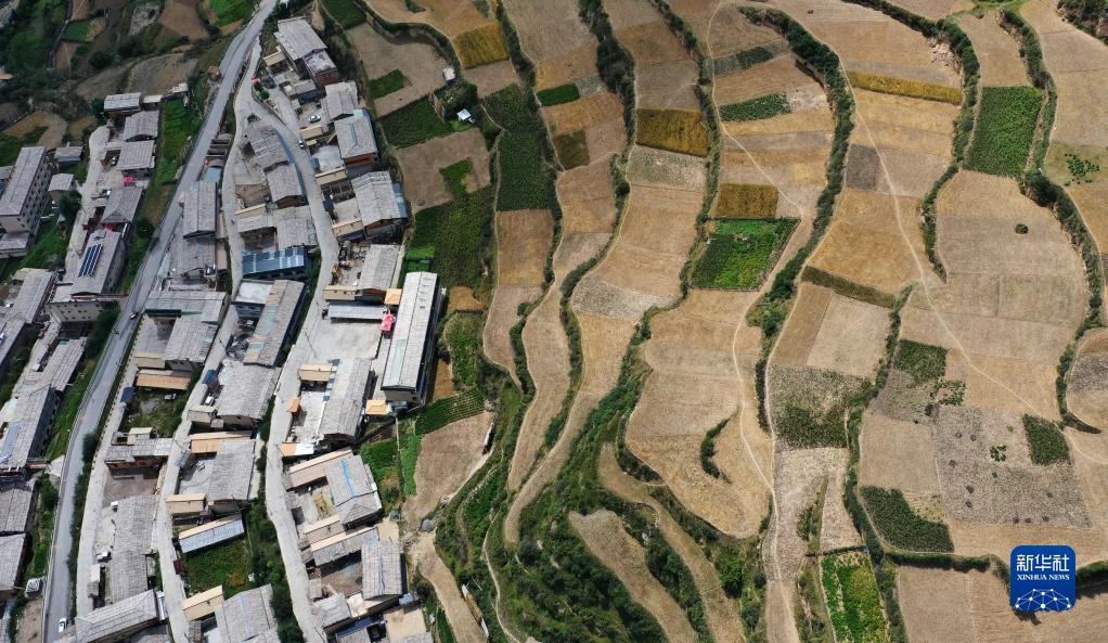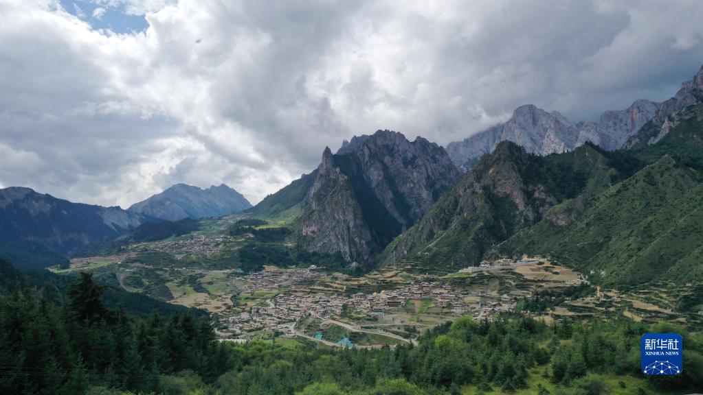 這是8月28日拍攝的扎尕那美麗風(fēng)光(無人機(jī)照片)。新華社記者 杜哲宇 攝