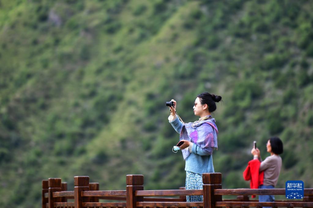 游客在扎尕那景區(qū)內(nèi)游覽拍照(8月28日攝)。新華社記者 陳斌 攝