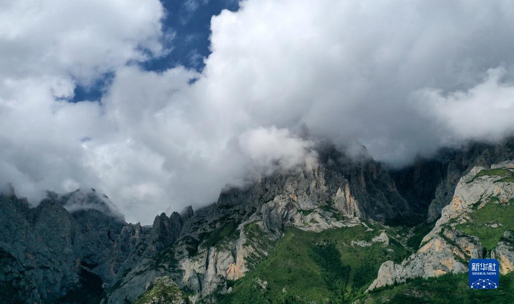 石壁陡峭,像是從云霧中生長出來,目之所及一片綠意,秋日的甘肅省甘南藏族自治州迭部縣扎尕那村,寧靜而美麗。[詳細(xì)] -