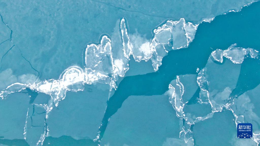 這是2020年4月20日拍攝的青海湖“開湖”景觀(無人機(jī)照片)。新華社記者 張龍 攝