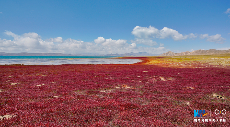 彩色的草原,讓冬格措納湖猶如童話世界。新華網(wǎng) 宋忠勇 攝