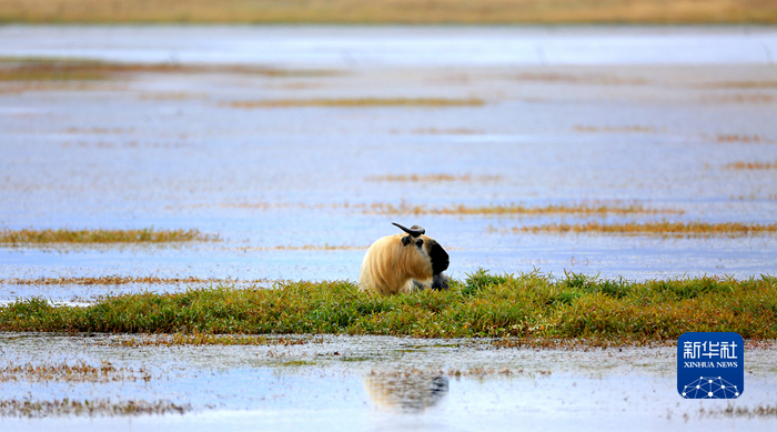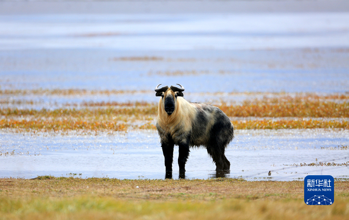 甘肅尕海則岔國家級自然保護區(qū)管理局尕海保護站工作人員在尕海湖畔拍攝到一頭羚牛。新華社 張勇 攝