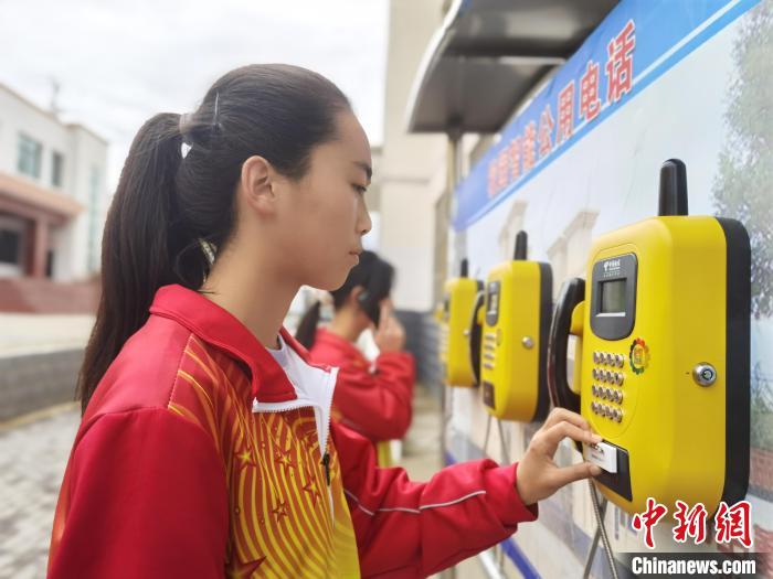 圖為住校生刷電子校徽,使用校園智能公用電話給家人打電話。張婧 攝