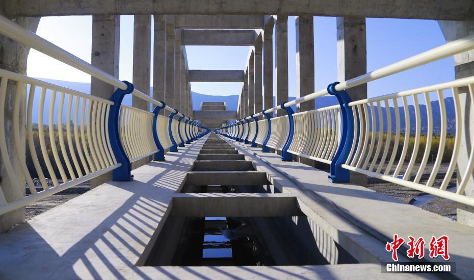 10月16日,青海省海南藏族自治州貴德縣拉西瓦灌溉工程中建設(shè)的渡槽內(nèi)部結(jié)構(gòu)。中新社記者 馬銘言 攝