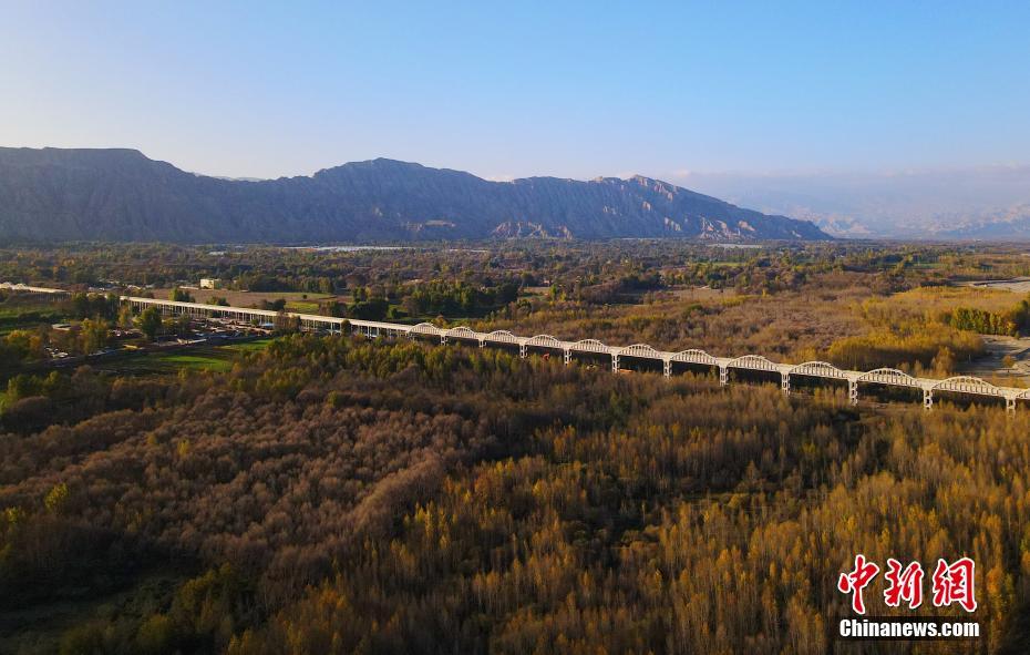 10月16日,航拍青海省海南藏族自治州貴德縣拉西瓦灌溉工程一角。中新社記者 馬銘言 攝