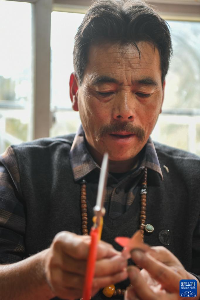 圖為桑安在制作五角星。新華社記者王曦 攝