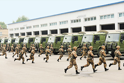 官兵緊急登車(chē)。王俊 攝