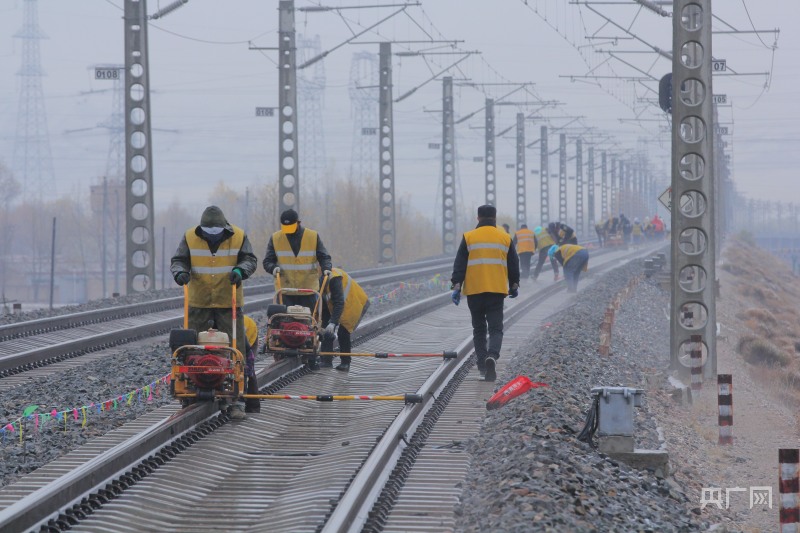 深秋時(shí)節(jié),在青海省海西蒙古族藏族自治州,巴音河畔的德令哈市雨雪飄揚(yáng)。在鄰近德令哈站的鐵路區(qū)間上,170余人正在火熱工作中。