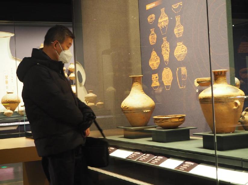 11月24日,青海省博物館試運(yùn)行,參觀者在青海歷史文物展廳內(nèi)參觀。新華社記者 白瑪央措 攝