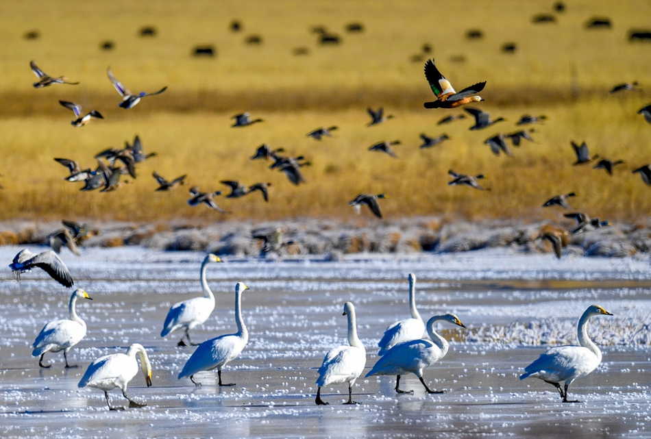 “碌曲縣依托“黃補(bǔ)”區(qū)項目先后將湖邊的尕海鎮(zhèn)、鎮(zhèn)屬機(jī)關(guān)單位遷移出了核心區(qū),將居住在尕海湖邊的牧民群眾實施了整村搬遷,有效減緩了對侯鳥的干擾?!备拭C尕海則岔國家級自然保護(hù)區(qū)管護(hù)中心尕海保護(hù)站站長香毛吉說,隨著尕海濕地生態(tài)的持續(xù)改善,為大天鵝提供了穩(wěn)定的越冬水位、豐富的濕地食物,在尕海境內(nèi)越冬的大天鵝數(shù)量逐年增加。