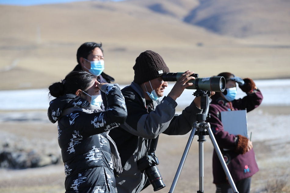 尕海保護(hù)站工作人員實地開展鳥類監(jiān)測調(diào)查。
