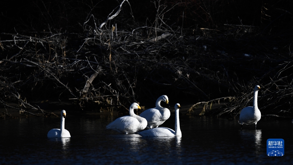 近日,前來越冬的近百只天鵝在青海省海南藏族自治州貴德縣境內(nèi)的黃河濕地覓食休憩,為冬日黃河帶來勃勃生機(jī)。近年來,青海省加大力度保護(hù)治理境內(nèi)黃河流域,改善當(dāng)?shù)厣鷳B(tài)環(huán)境,為越冬候鳥提供良好棲息地。