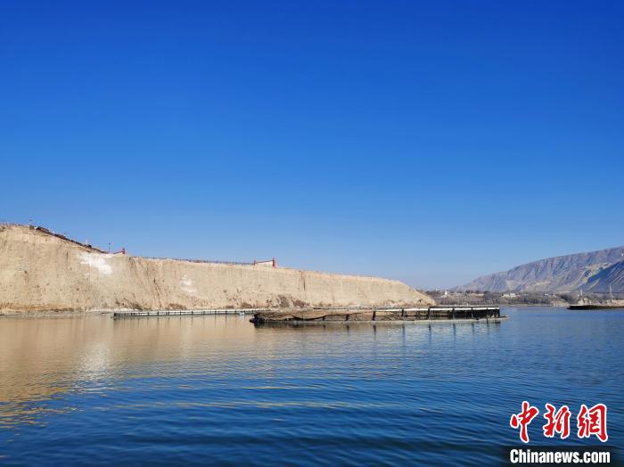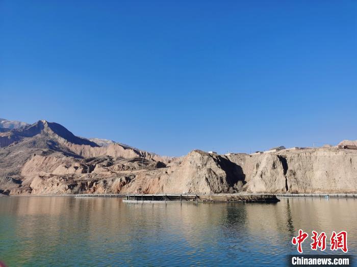 圖為青海省黃南藏族自治州尖扎縣黃河水面冷水魚養(yǎng)殖網(wǎng)箱?!?zhí)砀!z
