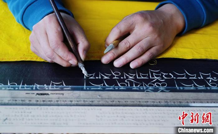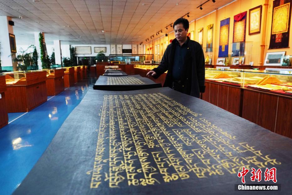 28歲的彭合日是傳習中心的一名優(yōu)秀學員。“來這里工作已經七年時間。金汁書寫經文是藏族的傳統(tǒng)文化,但在特制的藏紙上抄寫經文還是有難度。我們要根據紙的尺寸,設定藏文字體大小,老師就一筆一畫給我們教,直到能獨立抄寫經文?!睂τ谶@份家門口的工作,彭合日很滿意,每個月能拿到4000多元工資,抄寫經書越多工資也會相應有增加,這也將是自己走向社會的一門手藝。