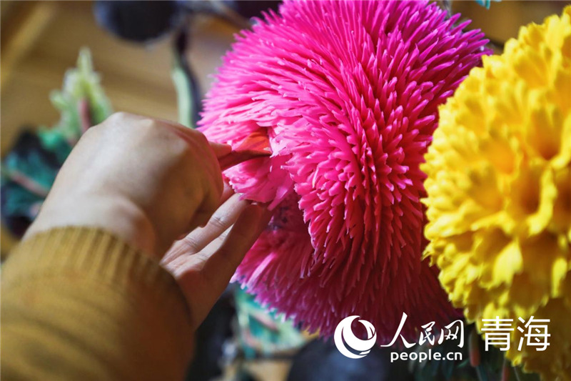 藝僧正在制作酥油花。人民網(wǎng) 張皓芃 攝
