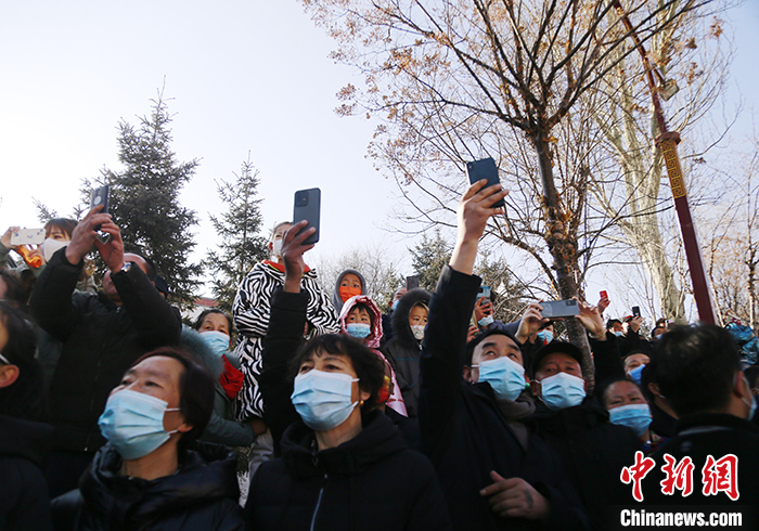 圖為信眾在塔爾寺內(nèi)迎接第九世格嘉·久美慈成南杰活佛,并用手機(jī)記錄。中新社記者 馬銘言 攝