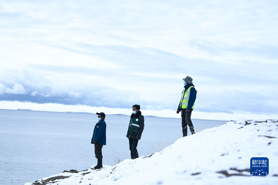 2021年10月20日,在青海省果洛藏族自治州瑪多縣扎陵湖鄉(xiāng)勒那村,三江源國家公園黃河源園區(qū)生態(tài)管護員在扎陵湖畔巡護。新華社記者 李占軼 攝