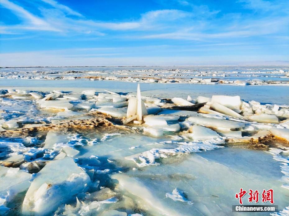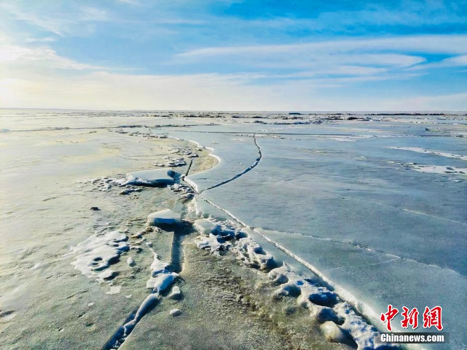 圖為青海湖邊的冰層慢慢裂開(kāi)。趙海梅 攝