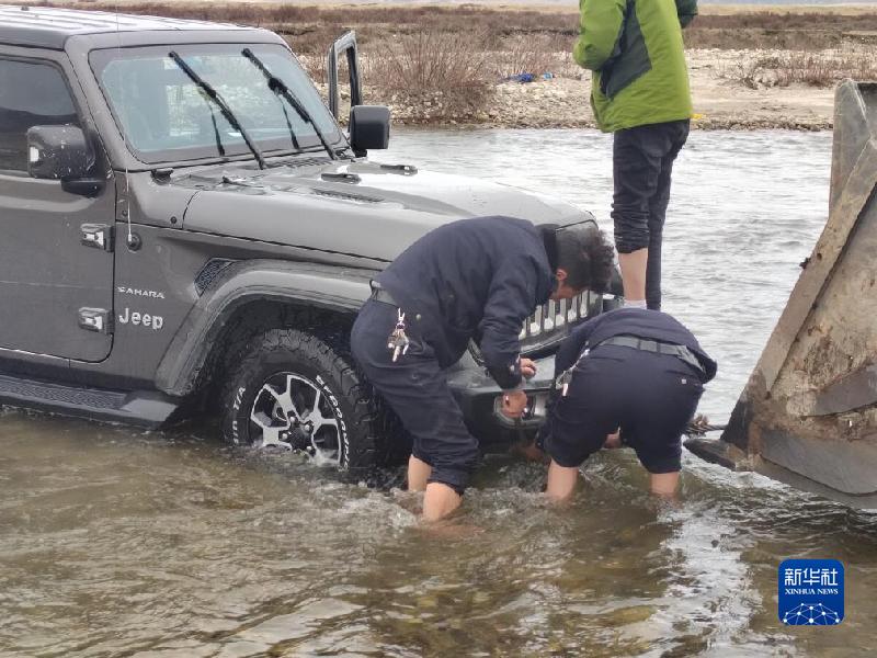 調(diào)來一輛挖掘機(jī)后,伍金曲批和輔警四郎曲扎卷起褲腿,脫下鞋子就踏進(jìn)冰冷的河水中,一步步淌到越野車邊,并將拖車?yán)K索穿到越野車拖車鉤上。