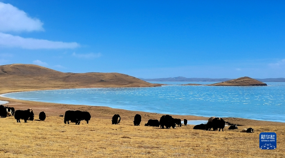 3月12日,位于瑪多縣境內(nèi)的三江源國家公園黃河源園區(qū),黃河源頭“姊妹湖”之一的鄂陵湖風光。新華社記者 呂雪莉 攝
